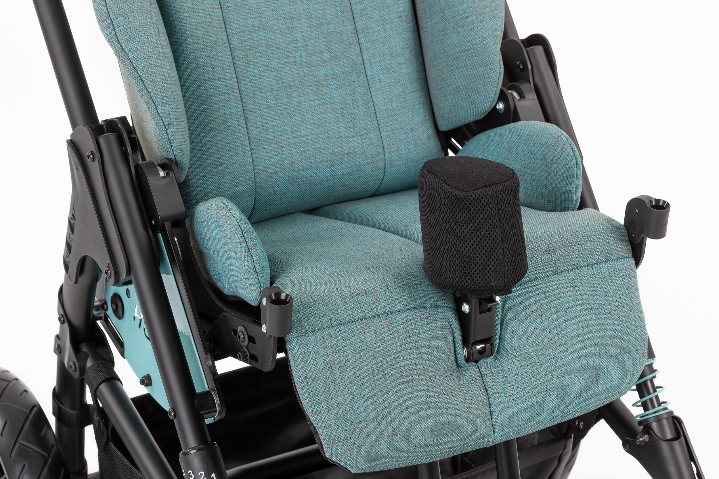 Acessório abdutor serve para melhorar o posicionamento postural, promovendo suporte às pernas do usuário no carrinho postural Bingo Evolution, isto é, visa manter as pernas afastadas de forma a alinhar a pélvis e o corpo. O abdutor possui sistema de abre-fecha (swing-away) para facilitar a entrada e saída do usuário no equipamento e ainda, pode ser removido quando houver necessidade. Extremamente prático e fácil de manuseio pelo cuidador.