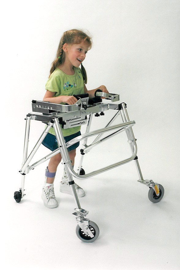 O andador anterior infanto-juvenil Kaye foi desenvolvido para crianças e adultos que podem suportar seus pesos em suas pernas durante a caminhada, mas que possuem uma necessidade maior de equilíbrio ou de suporte de tronco e ombro para manter um melhor alinhamento.