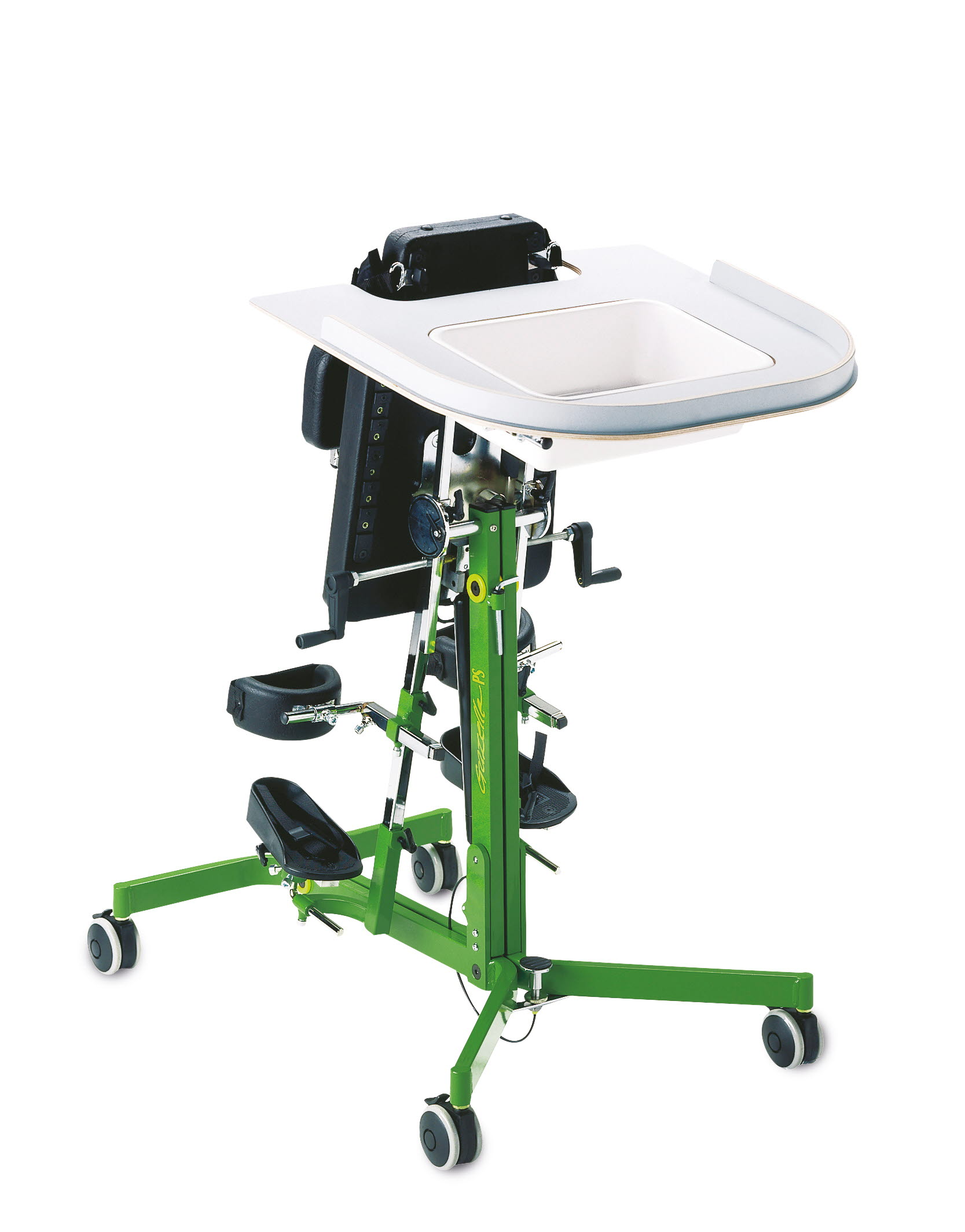 Acessório bandeja de plástico cinza com cavidade e tampa plástica para o estabilizador vertical parapodium infantil Gazelle PS é indicado durante as atividades e entretenimento do usuário durante o uso do equipamento.