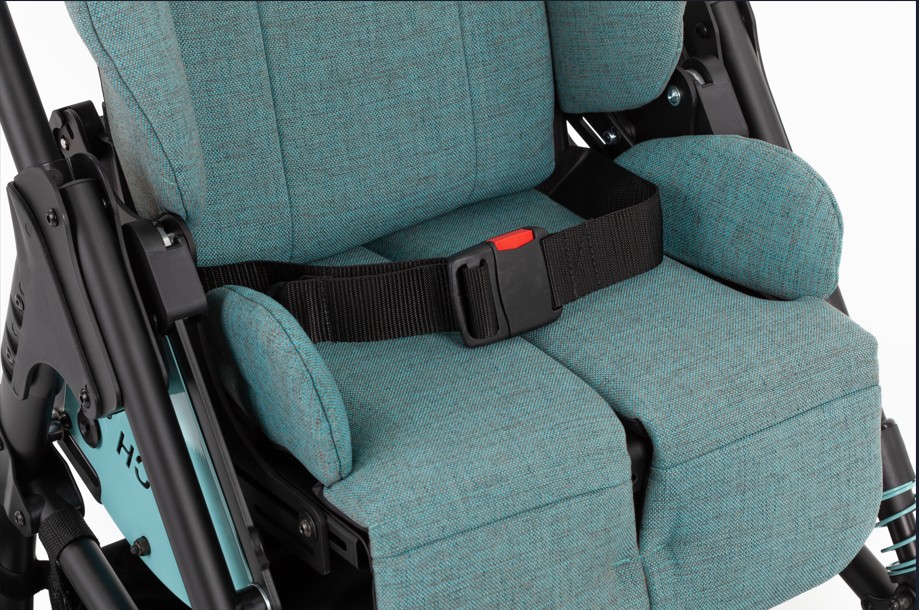 Acessório cinto pélvico visa proporcionar estabilidade postural e segurança, mantendo a pélvis do usuário para o carrinho postural Bingo Evolution ou do carrinho Zip firmemente posicionada e alinhada, prevenindo também possíveis deslizamentos e quedas.