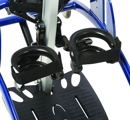 Acessório suporte de joelho articulado para o estabilizador vertical parapodium infantil Rabbit Up é indicado para posicionar as pernas enquanto distribui a pressão acima e abaixo do joelho, melhorando a postura do usuário no uso do equipamento.