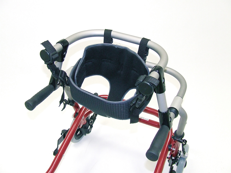 Acessório assento flexível para o andador posterior infantil Flux é indicado para aquele usuário que está em fase inicial de aprendizado e treino de marcha sendo, portanto, descontinuado após este período.
