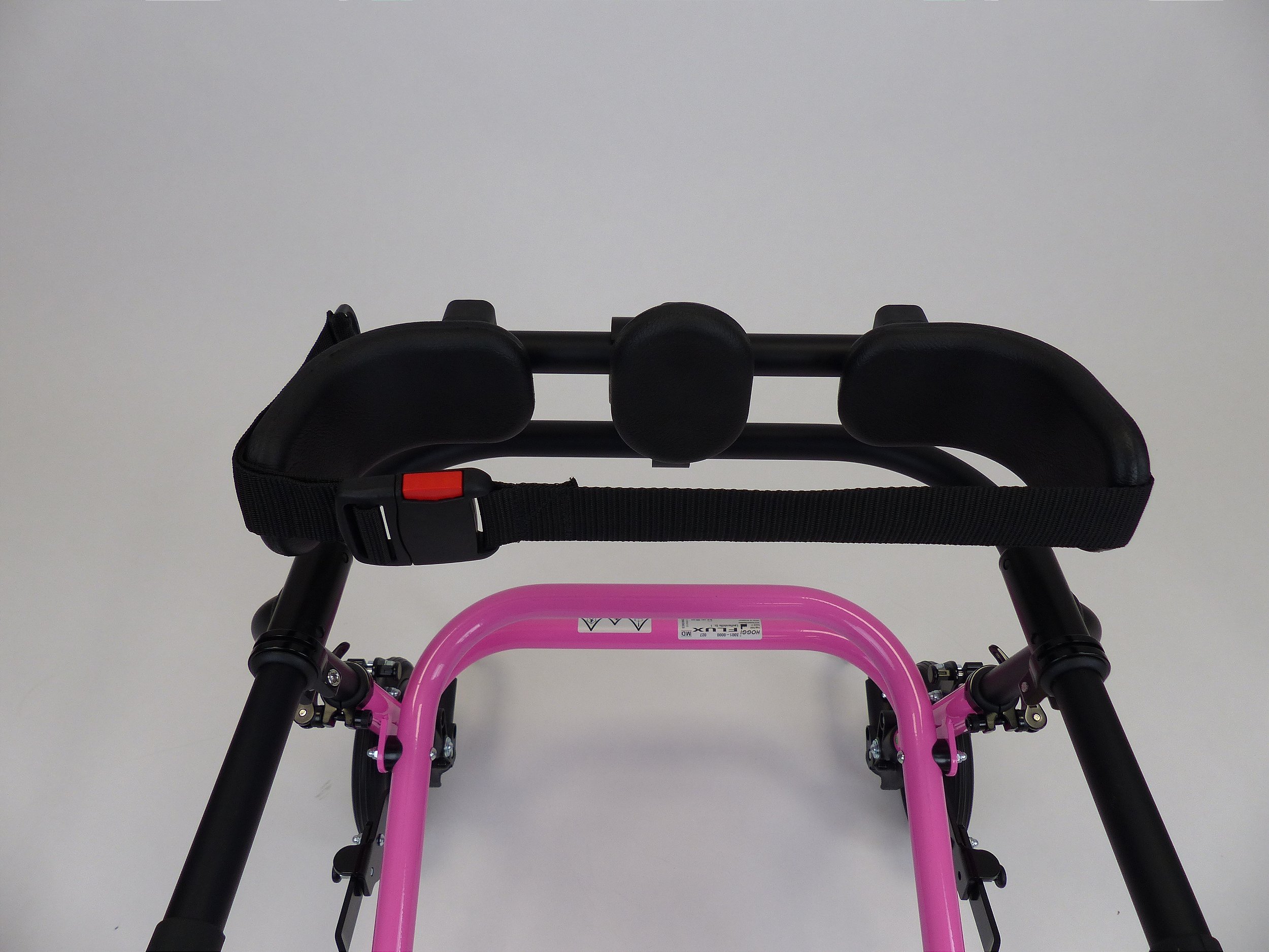 Acessório cinto de suporte pélvico para o andador posterior infantil Flux é utilizado em combinação com o suporte pélvico para maior segurança e estabilidade ao usar o equipamento.