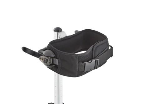 Com uma alça acolchoada, o suporte pélvico proporciona um suporte firme na região pélvica. A soltura sem supervisão do suporte é protegida por uma fivela frontal de segurança e um sistema regulável de catraca. Fácil de ajustar e usar com o usuário em pé no equipamento. Está disponível em 5 tamanhos.