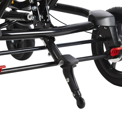 Este dispositivo de anti-tombamento deve ser considerado se o usuário costuma ficar posicionado com o centro de gravidade muito para trás, para usuários em que irmãos ou outras crianças podem, involuntariamente, se apoiar na alça de condução ou quando usado para transporte em um veículo.
