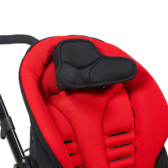 O suporte de cabeça anatômico possui sistema de ajuste de altura no encosto do carrinho postural Chilla. Ele está disponível somente na cor preta e possui 2 tamanhos.