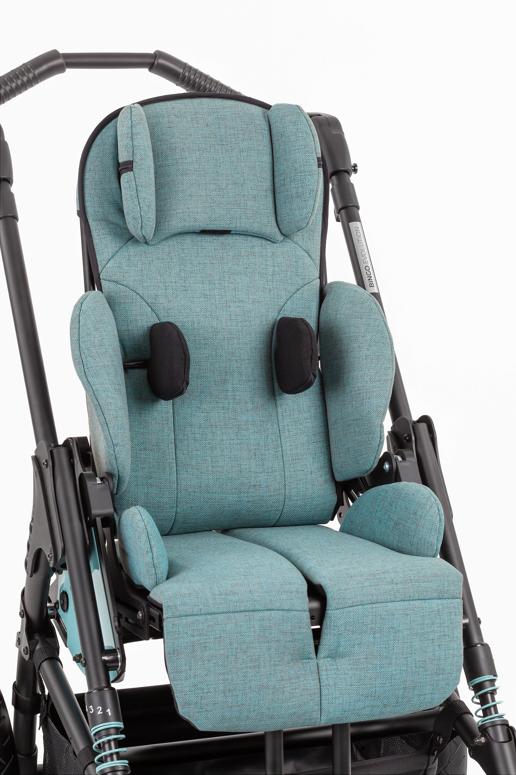 Acessório suporte de tronco visa estabilizar e posicionar o tronco do usuário no carrinho postural Bingo Evolution, prevenindo inclinações laterais ou deslizamentos para frente e para trás, melhorando sua postura erguida, conforto e qualidade de vida de quem precisa de sustentação postural para uma vida mais segura e independente.