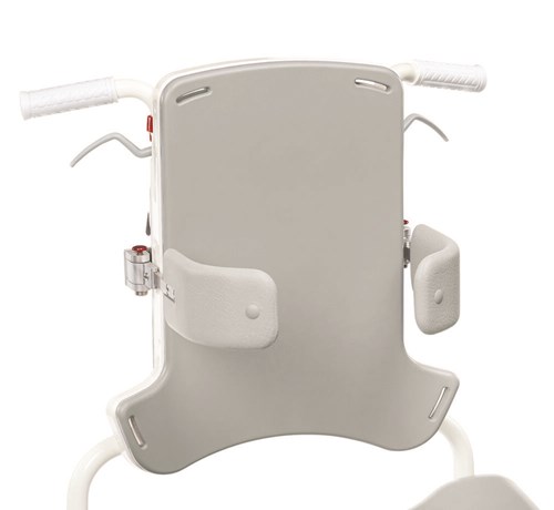 Acessório suporte de tronco visa estabilizar e posicionar o tronco do usuário na cadeira de banho e higiene Heron, prevenindo inclinações laterais ou deslizamentos para frente e para trás, melhorando sua postura erguida, conforto e qualidade de vida de quem precisa de sustentação postural durante o banho.